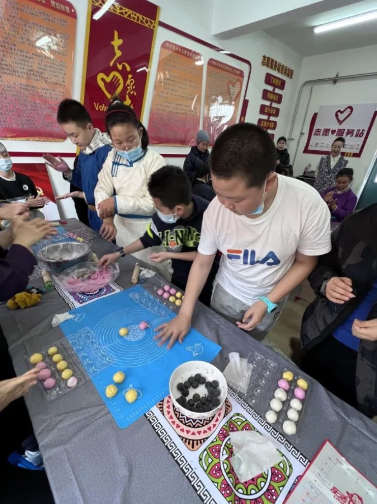 活动最后,社教老师还带领同学们一起制作了象征团圆美满的汤圆。大家认真搓匀揉团,热情洋溢、分工协作、默契配合、其乐融融,很快一排排圆滚滚、胖乎乎的多彩汤圆摆满了桌面,每一位同学们脸上都洋溢着幸福的笑容。